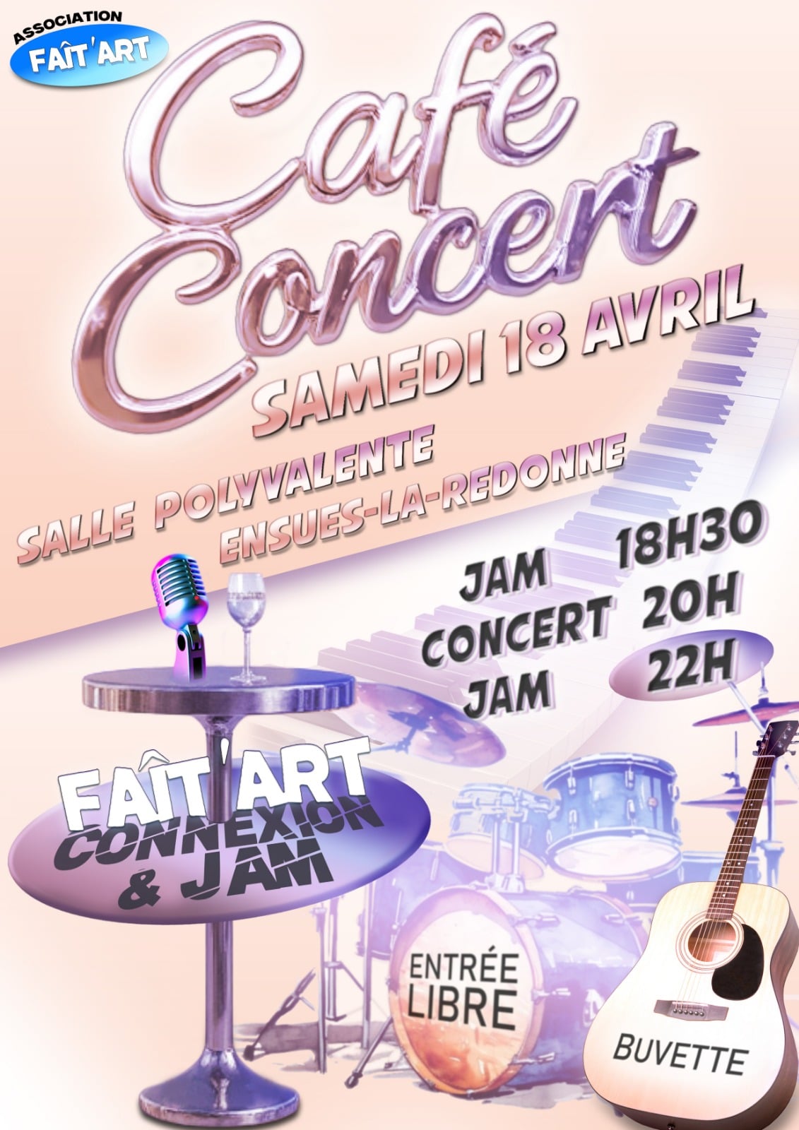 Infos évènement “Café Concert” par Noïm GJ | Mar 29, 2026 | Café-Concert, Evènements, INFOS | 0 commentaire Toutes les infos concernant l'évènement du Café-Concert sont à retrouver sur la page dédiée à cette évènement : Cliquez Ici pour accéder à la page Infos évènement “Café Concert”29 mars 2026Formulaire inscription musiciens à l’événement “Faîtes de la Musique” !29 novembre 2025 Envoyer Un Commentaire Annuler la réponseVotre adresse e-mail ne sera pas publiée. Les champs obligatoires sont indiqués avec *Commentaire * Nom * E-mail * Site web